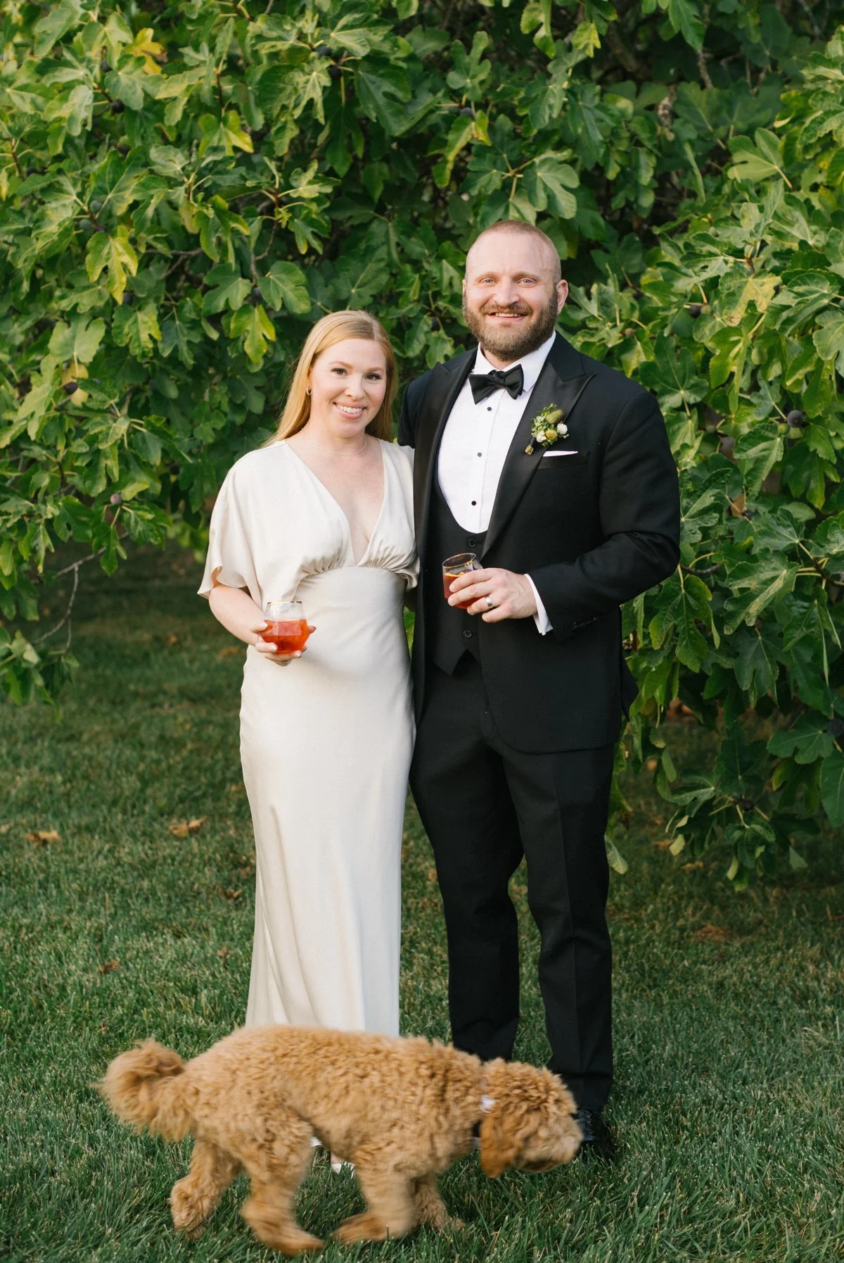 As the evening unfolded, guests mingled freely while the couple’s dogs Hamilton and Mango wandered the property, greeting familiar faces and becoming part of the festivities. The couple said that “having your pets attend is the sweetest cherry on top. Though you will want to assign a point person to keep an eye on them so that you aren’t distracted/worried.”