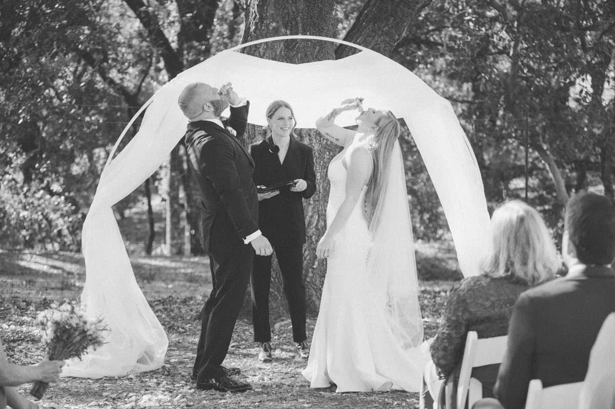 At the altar, the couple shared a shot of Underberg, a ritual that began years earlier during an anniversary dinner in San Francisco and became their way of marking moments centered on good food, celebration, and excess. It was a playful, personal addition to the ceremony that surprised guests and felt entirely true to them.