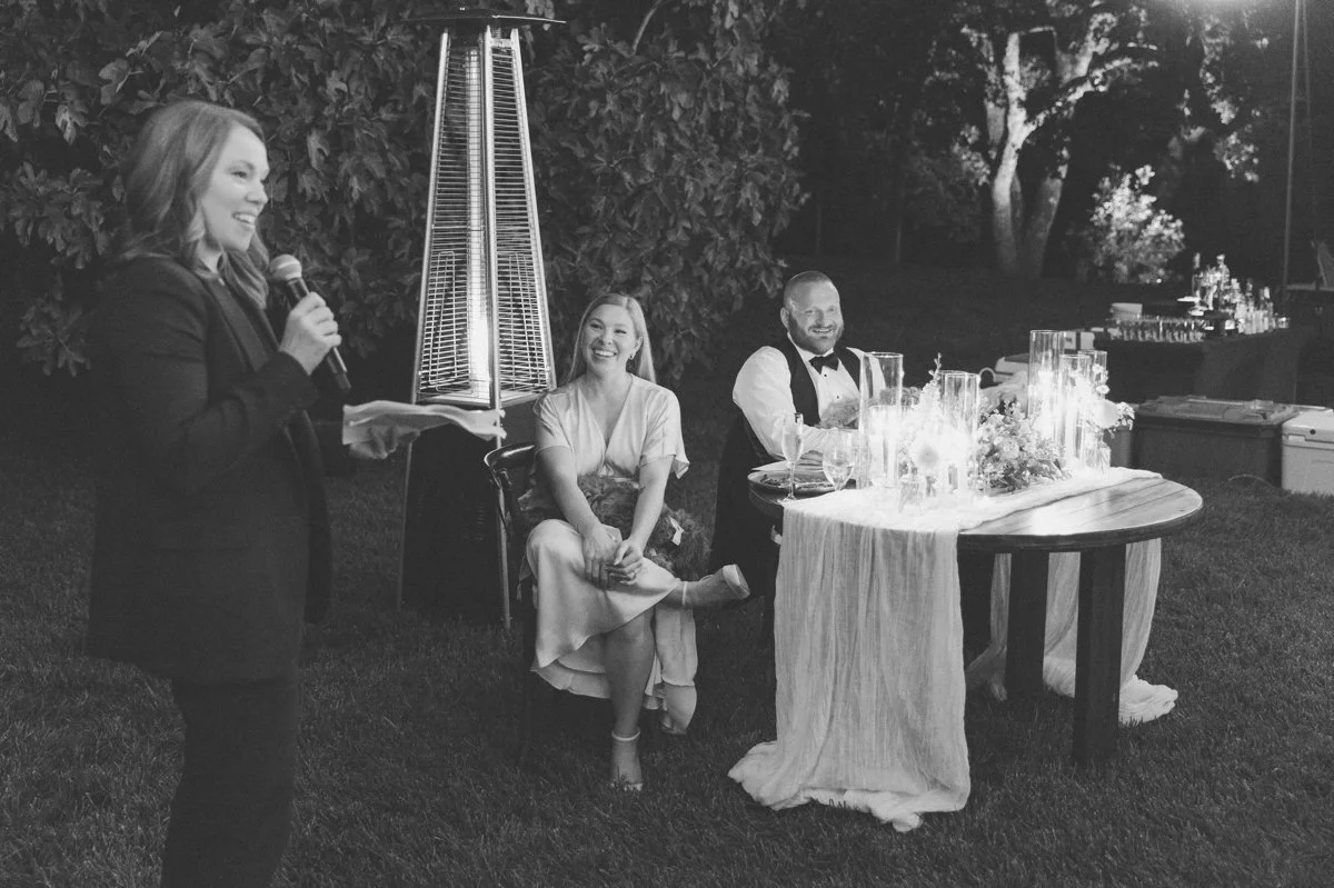 The bride’s twin sister gives an honest, funny, and heartfelt toast!